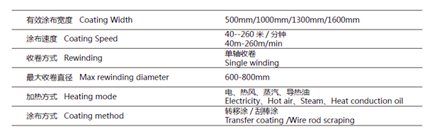 集放料、涂布、烘干、熱風循環、牽引、分切、收卷等生產工序一機完成。