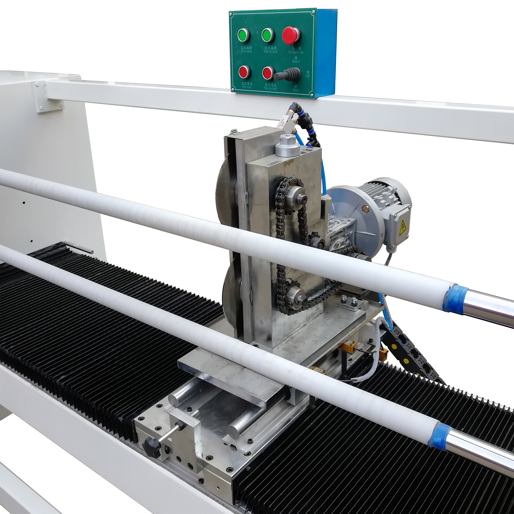 2. 電機控制系統為PLC可程式控制器,同軸中可設定2種尺寸,電腦于切割時自動調整切割寬度